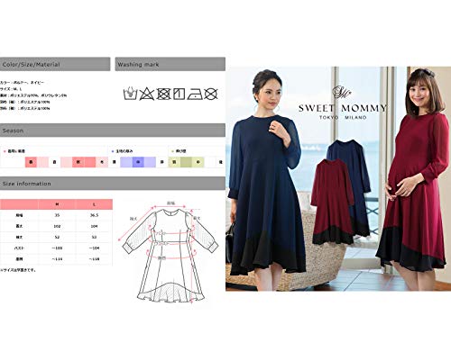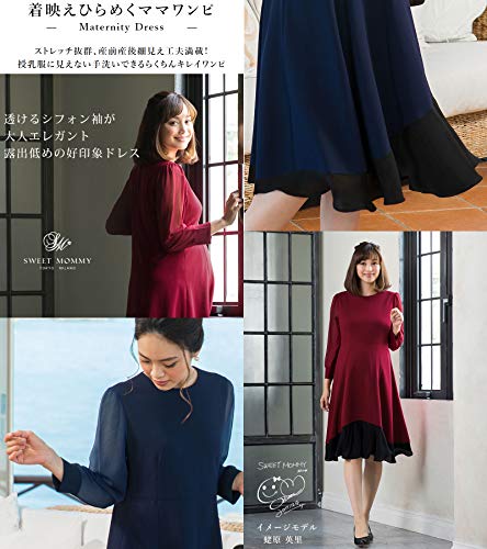Sweet Mommy マタニティ 授乳服 ワンピース シフォン切替フレア ネイビー M