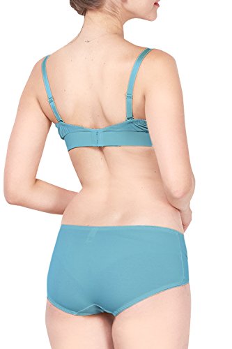 Sweet Mommy 【日本製】 ノンワイヤー モールド 授乳ブラジャー&ショーツ セット コットンストレッチ カシュクールタイプ 産前産後兼用ショーツ ローライズ 下着セット 2点セット パンツ 大きいサイズ/LL/ブルーグリーン