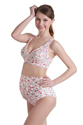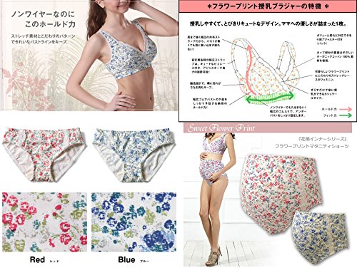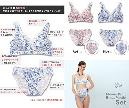 Sweet Mommy フラワープリント 授乳ブラ & ショーツ セット 2点セット 選べる産前・産後ショーツ 花柄 フェミニン ストレッチレース 柔らか素材 パッド裏・クロッチ部分はオーガニックコットン100% (マタニティ用)/レッド/マタニティLL