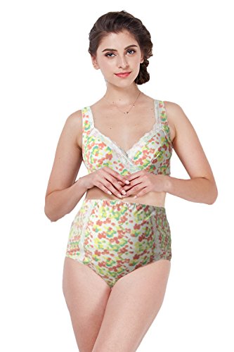 Sweet Mommy 【日本製】 フラワープリント マタニティショーツ ストレッチレース 産前用 マチ部分はオーガニックコットン 水彩花柄 出産準備 フェミニン おなかをすっぽり包む 【単品】/アクア/L