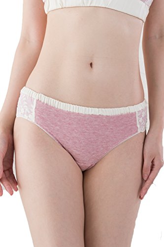 Sweet Mommy 【日本製】 ふわかる産後ショーツ オーガニックコットン100% クロッチ部分はソフトスムースコットン コットン刺繍 チュールレース エアリーショーツ パンツ 普通身幅 単品/L/ローズ