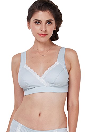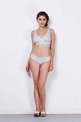 Sweet Mommy 【日本製】 授乳ブラジャー 授乳ママの常識を変えた 伝説の授乳ブラ パッド裏はオーガニックコットン100% 4段階アジャスター ソフトパッド取り外し可能 チクチクしないストレッチレース/アイスブルー/グラマラスM