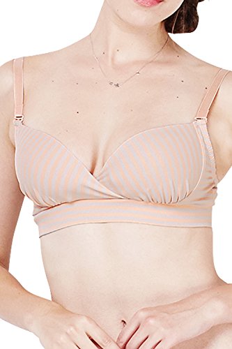 Sweet Mommy 【日本製】 ノンワイヤー 授乳ブラ フロントすっきり モールドカップ ストレッチ素材 ホールド力抜群 カシュクール 4段階アジャスター ブラジャー 出産準備 入院 授乳服 マタニティ 産前産後 L ピンクベージュ×グレー