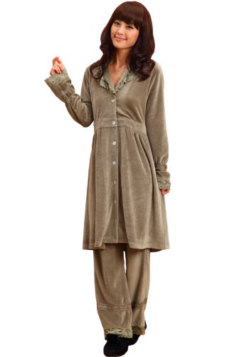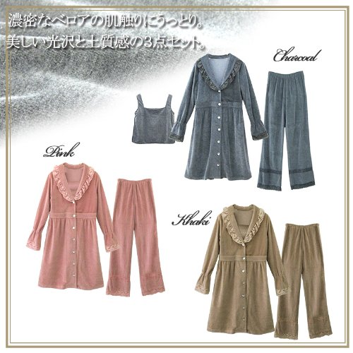 スウィートマミー コットンベロア素材 ショールカラー 授乳 ナイティ 3点セット L カーキ