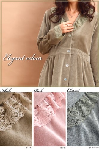 柔らかなベロアの上品な肌触りと、華やかなレースをあしらったショールカラーが