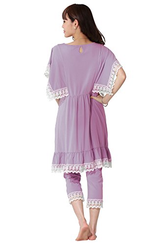 Sweet Mommy マタニティパジャマ 授乳口付き 上下セット フレアスリーブ マタニティボトム コットン 大きいサイズ アンティークレース 入院準備 春 夏 産前産後 ルームウェア ナイティ 授乳服 L ライラック