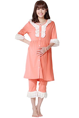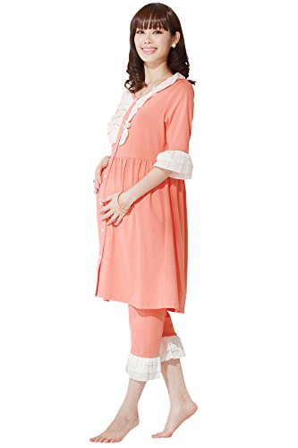 Sweet Mommy マタニティパジャマ 授乳レイヤー 3点セット コットンフリル 授乳服 マタニティボトム 大きいサイズ 実用新案取得タンクトップ型授乳インナー 入院準備 春 夏 産前産後 ルームウェア ナイティ/ピンク/M