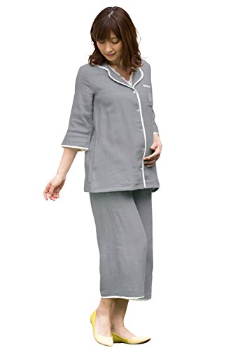 Sweet Mommy マタニティパジャマ 3重ガーゼ 日本製 長袖 ネイビー L