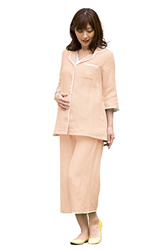 Sweet Mommy マタニティパジャマ 3重ガーゼ 日本製 長袖 シャーベットオレンジ M