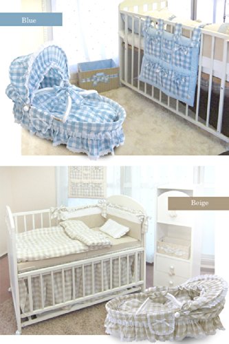 DESIGNERS GUILD (デザイナーズギルド) チェック柄 ベビーキャリー クーファン 日本製 布団3点セット付き ブルー 【別便扱い】