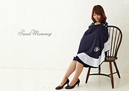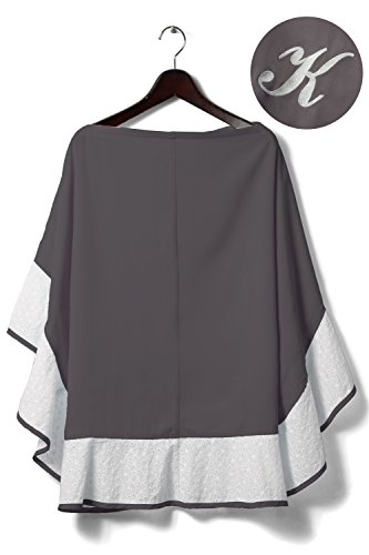 スウィートマミー (Sweet Mommy) イニシャル刺繍が選べる リバーシブル ワイヤー入り レーシー 授乳ケープ ポーチ付き 授乳服 K チャコール