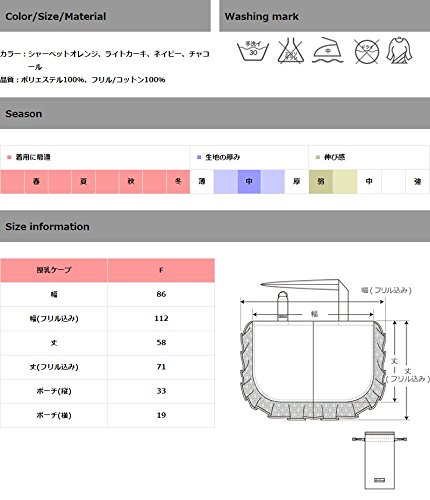 - サイズ(cm): F(幅86, フリル込の幅112, 丈58, フリル込の丈71, ポーチ縦33, ポーチ横19)