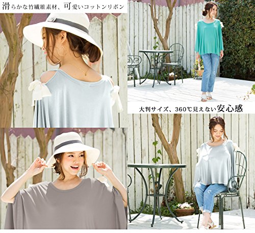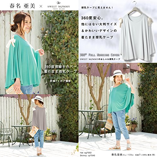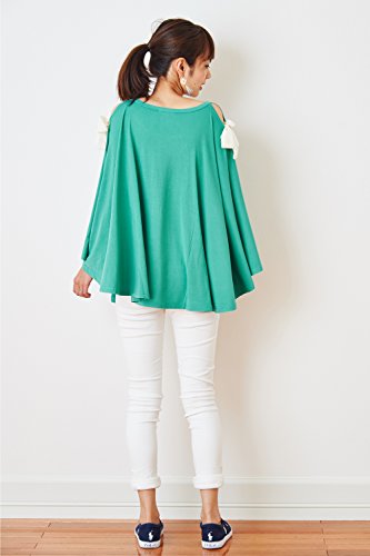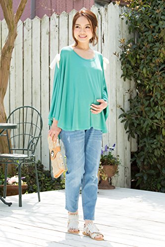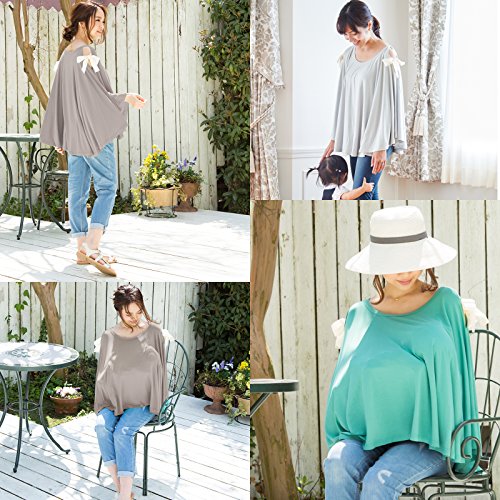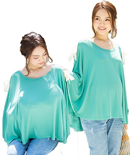 Sweet Mommy マタニティトップス 授乳服 授乳ケープ 着たまま授乳 360度安心 Tシャツ 大きいサイズ とろみ竹繊維 大判 天然素材 2WAY肩魅せ 春 夏 産前産後/F/ターコイズ