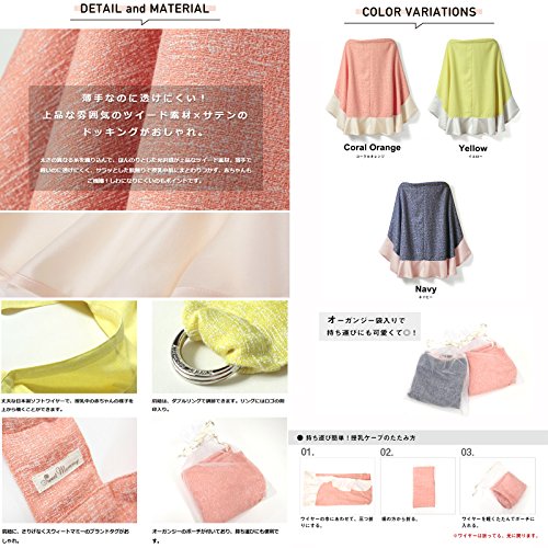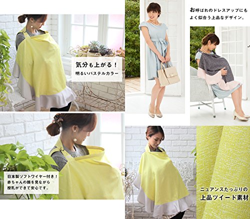 Sweet Mommy ツイード×サテン 授乳ケープ 大判 日本製ソフトワイヤー 上品 オーガンジー袋入り ギフトにも 意匠登録済み/F/イエロー