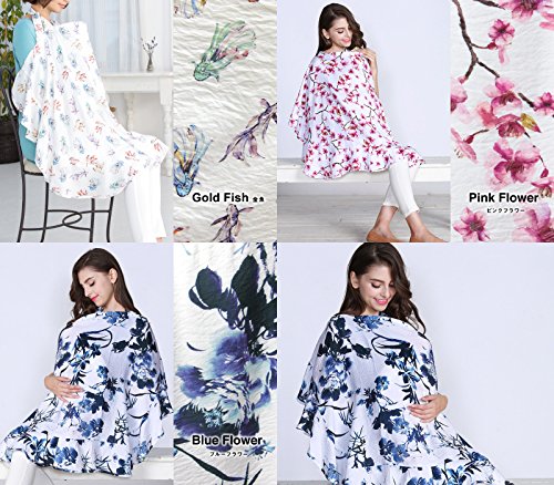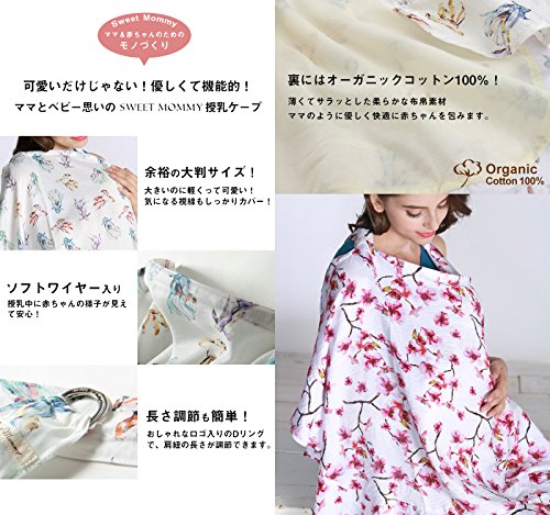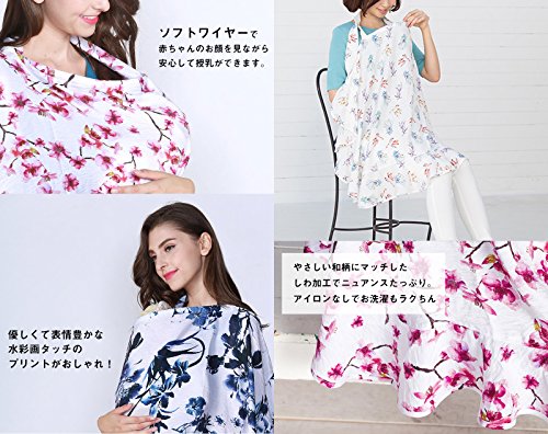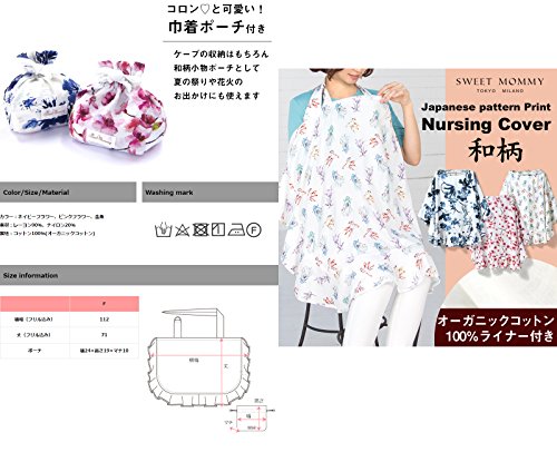 Sweet Mommy 授乳ケープ 大判 和柄 コットン100%裏地 巾着付 ソフトワイヤー フラワーピンク