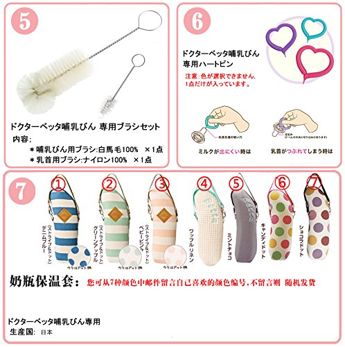 - 5,専用ブラシセット 6,保温ポーチ 7,ドクターベッタ哺乳びん 専用ハートピン