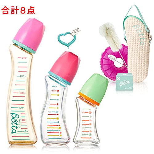 【セット内容★合計8点】 1,PPSU製 ジュエルS2M-240ml 2,ガラス製 ジュエルGC3-150ml 3,ガラス製 ジュエルGC2-80ml 4,ドクターベッタ哺乳びん 専用ブラシセット 5,ドクターベッタ哺乳びん専用 ロート・フラワー(ローズ) 6,スタンダード乳首(クロスカット2個入) 7,ハートピン(哺乳瓶箱入り場合あり) 8,保温ポーチ(8種類選択可能) 【套装内容(共8件)】 1,钻石PPSU树脂O型S2M-240ml 2,钻石玻璃O型GC3-150ml 3,钻石玻璃O型GC2-80ml 4,Betta专用马毛瓶刷2件套 5,玫瑰色漏斗 6,钻石×型奶嘴2枚盒装 7, 通奶针(包装在奶瓶里面) 8,奶瓶保温套(8色可选)
