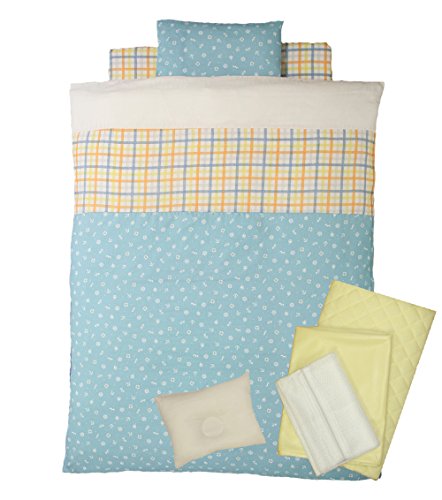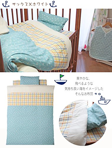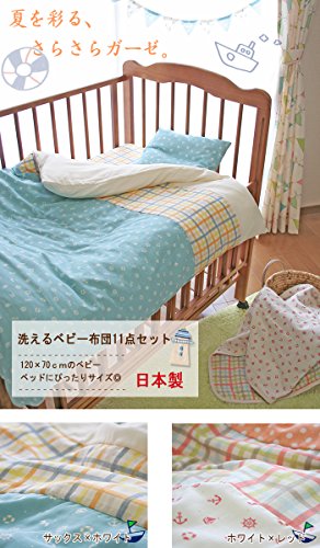 洗えるベビー布団11点セット《メル》【日本製】【ダブルガーゼ】 (サックス×ホワイト)