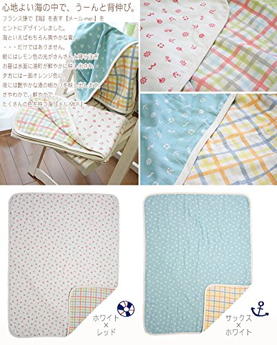 国産8重ガーゼケット《メル》【85c×110c】【日本製】 (ホワイト×レッド)