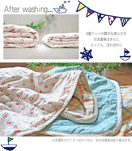 マリン柄とチェック柄がさわやかで可愛いベビー用ガーゼケットです。