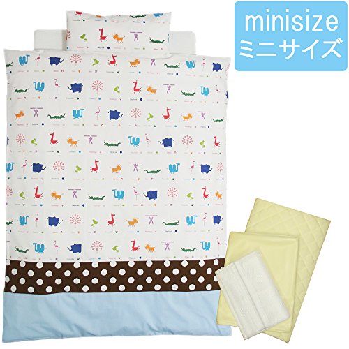 ミニふとん 洗えるカバーリング《Zoo》ベビー布団10点set【全2柄】【日本製】 (サックス)