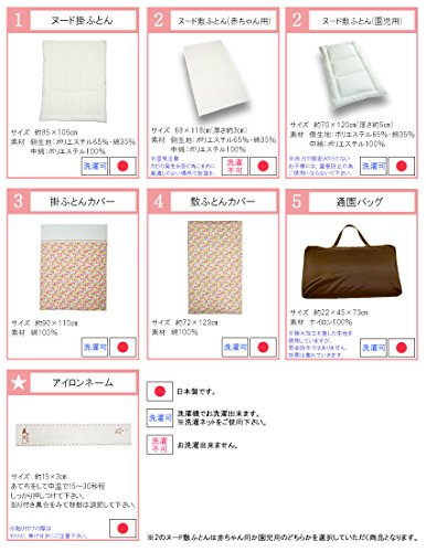 お昼寝 洗える布団 5点セット《KIKIピンク》【日本製】 (赤ちゃん用 固綿敷布団, ネイビーバッグ)