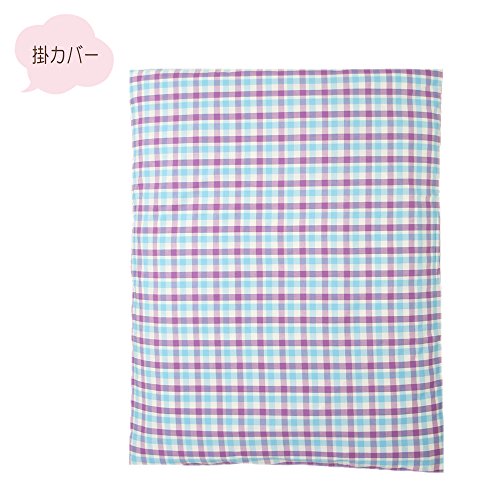 お昼寝用 洗える布団セット《2色チェック:紫×水色》【日本製】 (園児用 洗える敷布団, ネイビーバッグ)