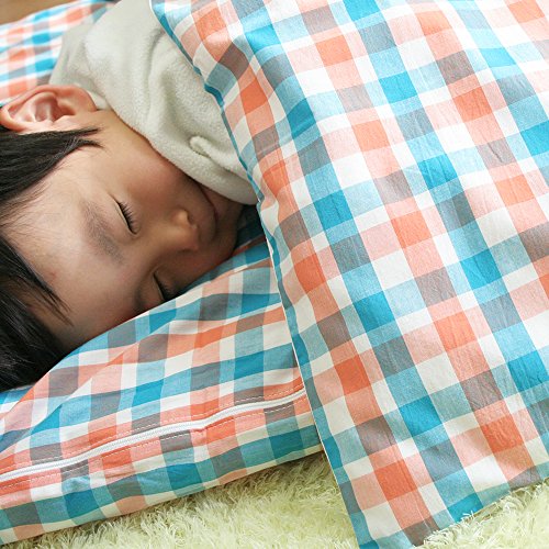 お昼寝用 洗える布団セット《2色チェック:オレンジ×青》【日本製】 (園児用 洗える敷布団, ワインバッグ)