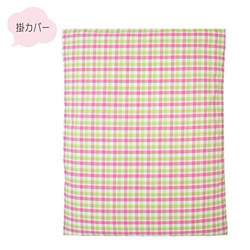 お昼寝用 洗える布団セット《2色チェック:ピンク×黄緑》【日本製】 (園児用 洗える敷布団, ブラウンバッグ)