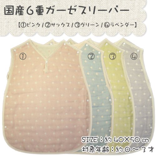 国産6重ガーゼベビースリーパー 《水玉》【全4色】【日本製】 (サックス)