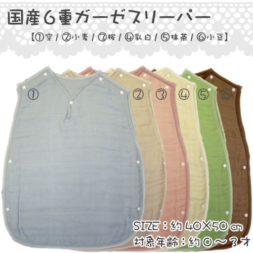 国産6重ガーゼベビースリーパー 《無地》【全6色】【日本製】 (小豆)