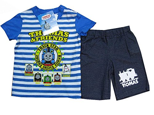 トーマス パジャマ (90㎝/青縞) 半袖Tスーツ サイズ90cm ベビー服 キッズ 子供用 Tシャツスーツ