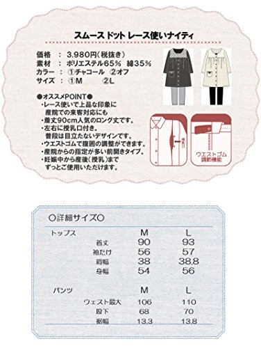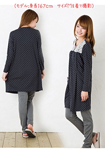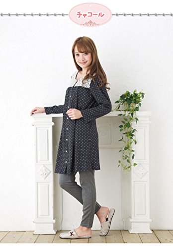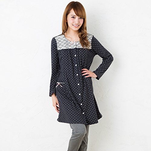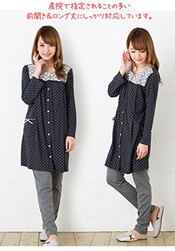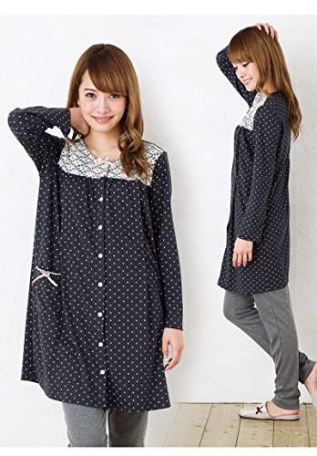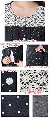 マタニティ パジャマ かわいく上品なドット柄レース使い/秋〜秋冬〜冬/スムース ドットプリントナイティ / 授乳口付きマタニティー パジャマ/前開き・ロング丈/おしゃれ・大きいサイズ/長袖マタニティ パジャマ レディース