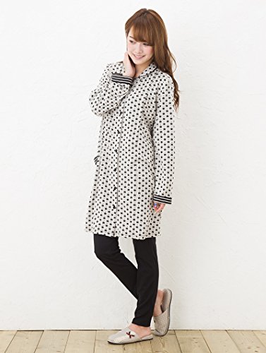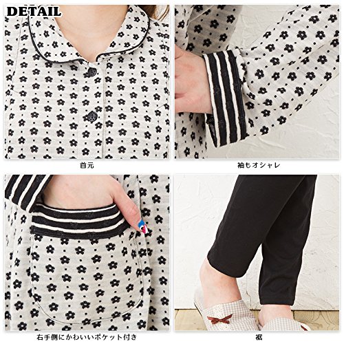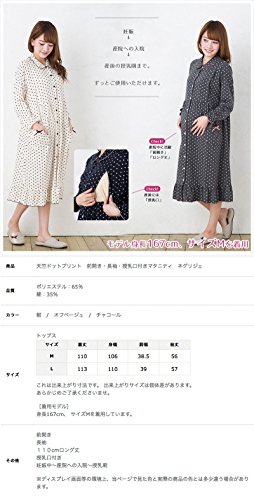 長袖マタニティ パジャマ 接結花柄ジャカード/秋〜秋冬〜冬/花柄 マタニティ パジャマ 前開き 入院にも/授乳口付き・長袖・前開き・パンツにはアジャスター付き・ロング丈・マタニティ パジャマ (L, オフベージュ)