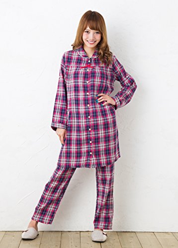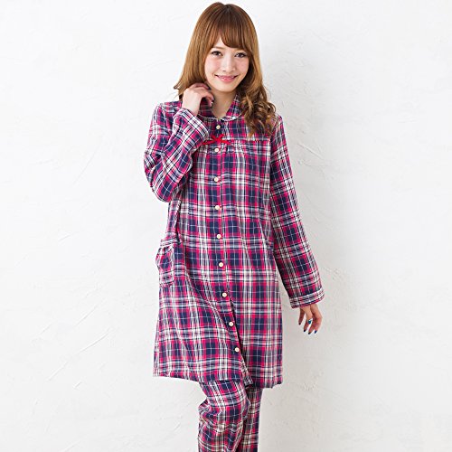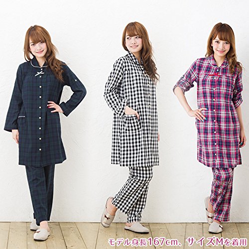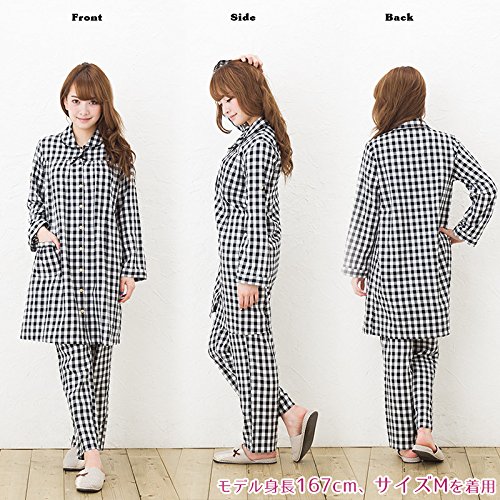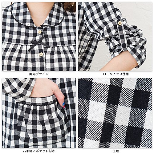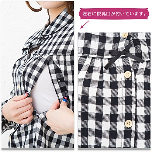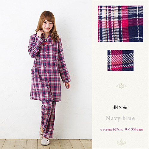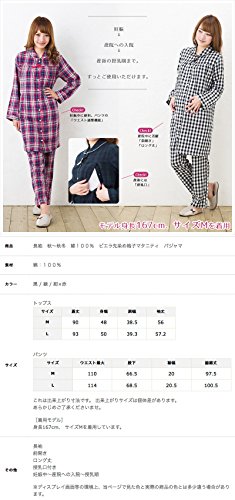 綿100%ロールアップ長袖マタニティ パジャマ チェック柄/ビエラ先染め格子(チェック)/秋~秋冬〜冬 綿100%ロールアップ授乳パジャマ /授乳口付き マタニティ パジャマ 前開き 入院にもオススメ (M, 紺)