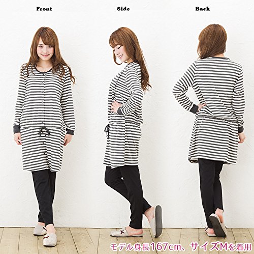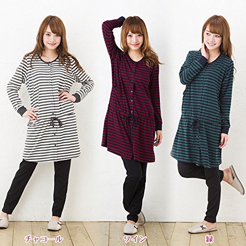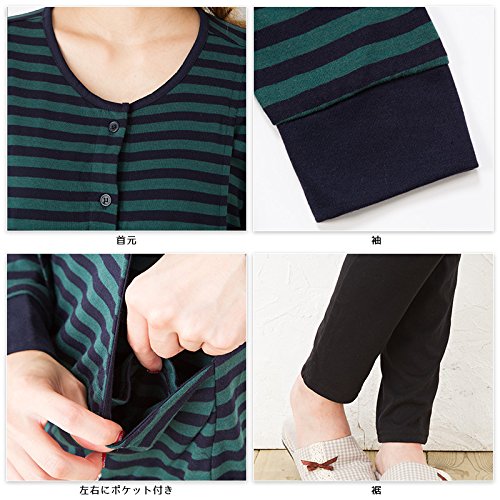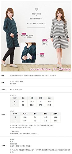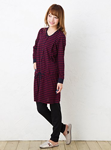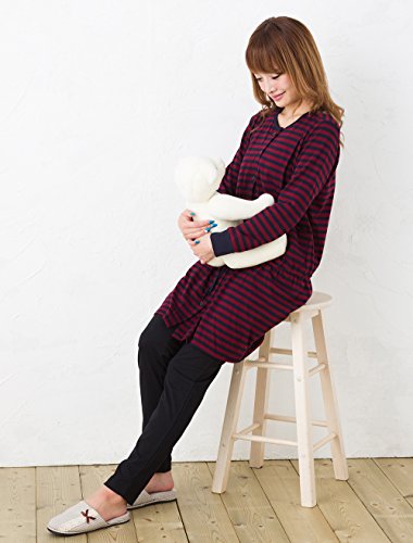 前開きマタニティ パジャマ 天竺ボーダー/秋〜秋冬〜冬/長袖 マタニティ パジャマ 前開き 入院にも/授乳口付き・長袖・前開き・パンツにはアジャスター付き・ロング丈・レディース マタニティ (L, ワイン)