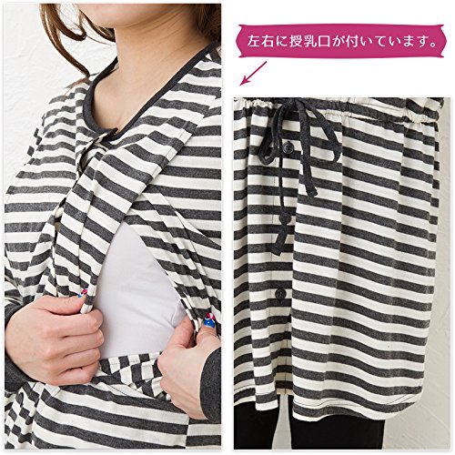 授乳口付きの長袖マタニティ パジャマです。産院からの指定の「前開き」「ロング丈」仕様。パンツのウエスト調整機能もあり妊娠中から産院への入院、産後の授乳期までずっとご使用いただけます。