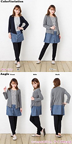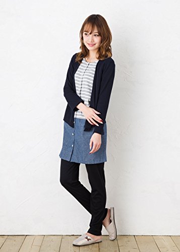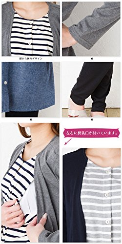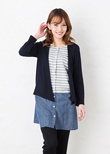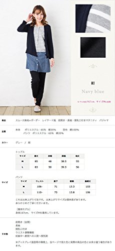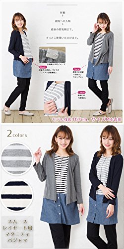 長袖マタニティ パジャマ レイヤード風/春〜春夏/スムース生地/ 授乳口付き・長袖・前開き・パンツにはアジャスター付き・ロング丈/入院用としてもオススメ。マタニティ パジャマ (L, 紺)