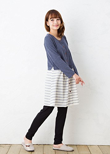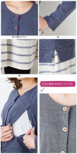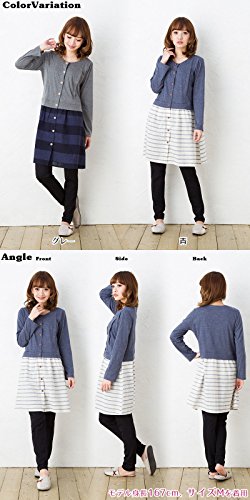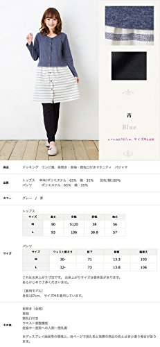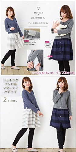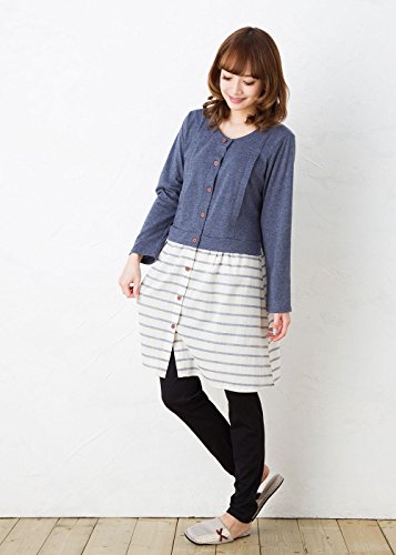 長袖マタニティ パジャマ ワンピース風/春〜春夏/ワンマイル/ 授乳口付き・長袖・前開き・パンツにはアジャスター付き・ロング丈/入院用としてもオススメ。マタニティ パジャマ (M, 青)