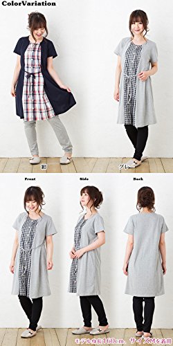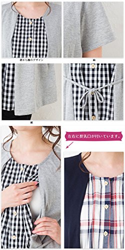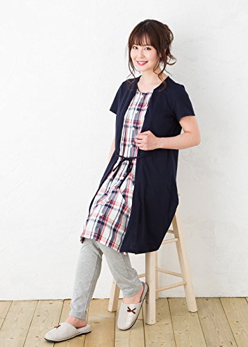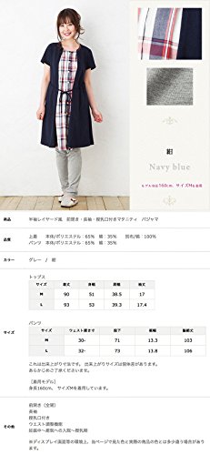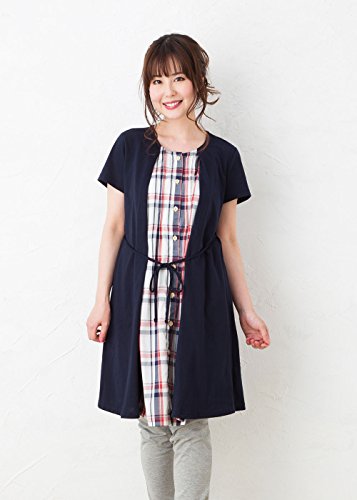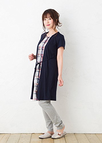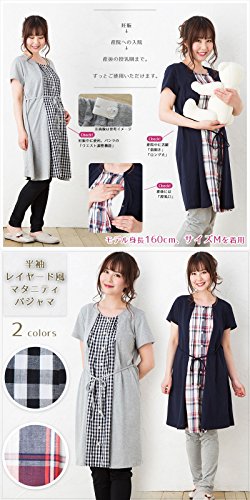 半袖 マタニティ パジャマ/春夏・夏/レイヤード風/ 授乳口付き・半袖・前開き・パンツにはアジャスター付き・ロング丈/入院用としてもオススメ。マタニティ パジャマ (L, 紺)