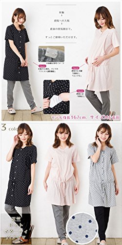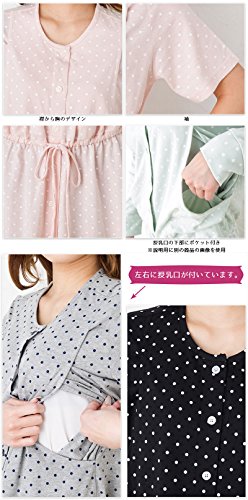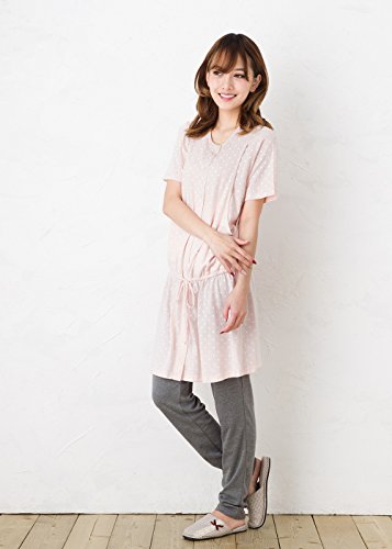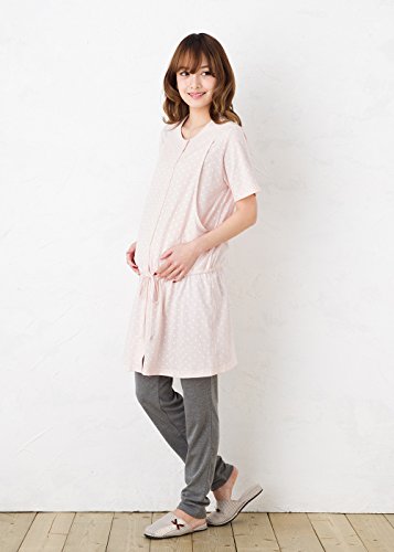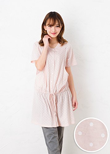 半袖マタニティ パジャマ 春夏~夏〜夏秋 竺先ドット(水玉)柄マタニティパジャマ 半袖 授乳パジャマ/マタニティ パジャマ 前開き 入院用にもオススメ/ ドット授乳口付き・半袖・ロング丈 (M, ピンク)