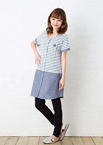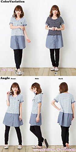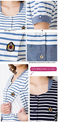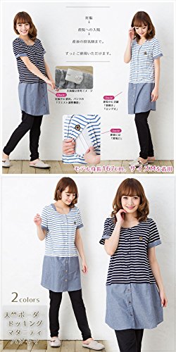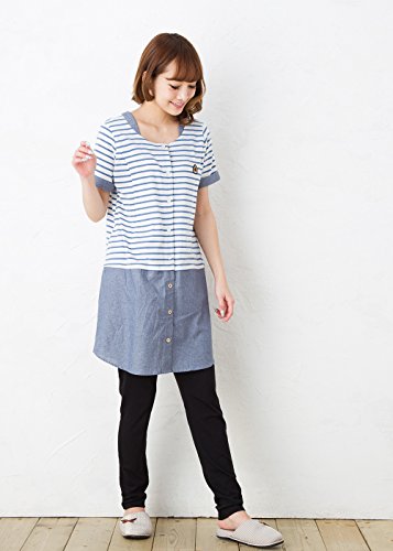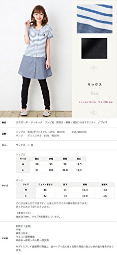 半袖 マタニティ パジャマ/春夏・夏/天竺ボーダー ドッキング ワンピ風/ 授乳口付き・半袖・前開き・パンツにはアジャスター付き・ロング丈/入院用としてもオススメ。マタニティ パジャマ (M, サックス)