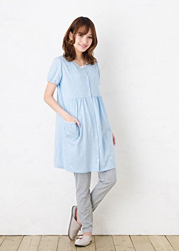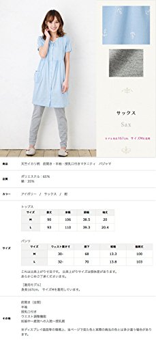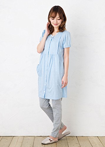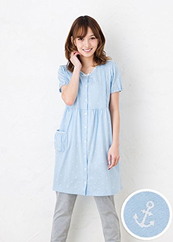 半袖マタニティ パジャマ 春夏~夏〜夏秋 竺先イカリ柄マタニティパジャマ 半袖 授乳パジャマ/マタニティ パジャマ 前開き 入院用にもオススメ/ イカリ柄 授乳口付き・半袖・ロング丈 (M, サックス)
