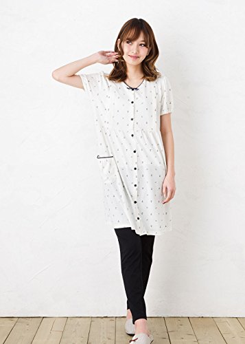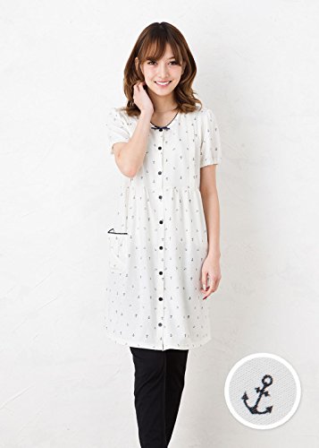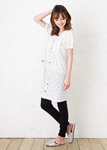 半袖マタニティ パジャマ 春夏~夏〜夏秋 竺先イカリ柄マタニティパジャマ 半袖 授乳パジャマ/マタニティ パジャマ 前開き 入院用にもオススメ/ イカリ柄 授乳口付き・半袖・ロング丈 (M, アイボリー)