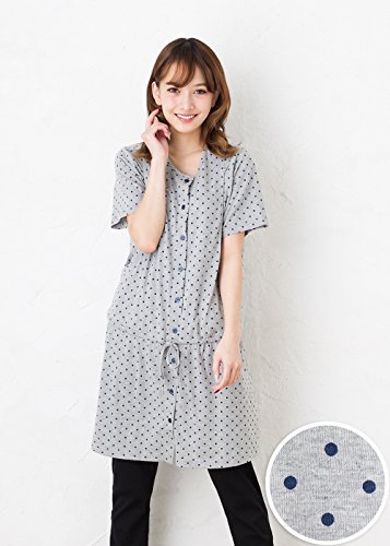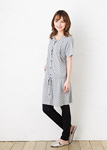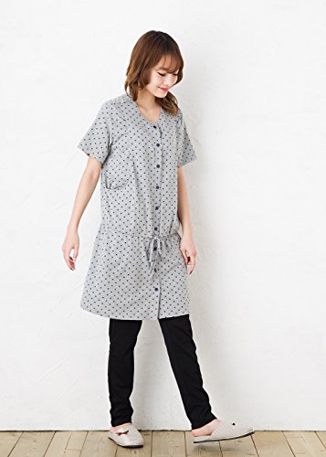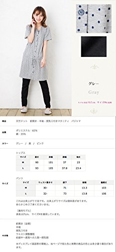 半袖マタニティ パジャマ 春夏~夏〜夏秋 竺先ドット(水玉)柄マタニティパジャマ 半袖 授乳パジャマ/マタニティ パジャマ 前開き 入院用にもオススメ/ ドット授乳口付き・半袖・ロング丈 (L, グレー)