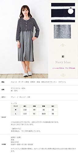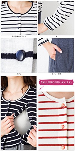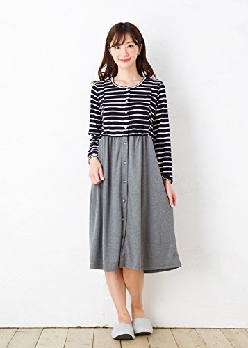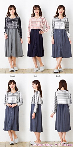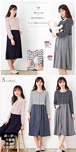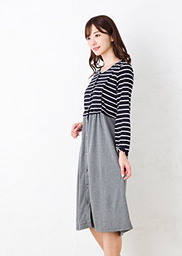 マタニティ ネグリジェ 前開き・長袖 /夏秋〜秋/ スムース マタニティ ネグリジェ/授乳口付きマタニティ パジャマ 前開き 入院にもオススメ。長袖・ロング丈 (M, 紺)