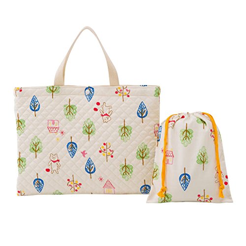 キルティング レッスンバッグ 巾着袋つき フォレストフレンズ オフホワイト