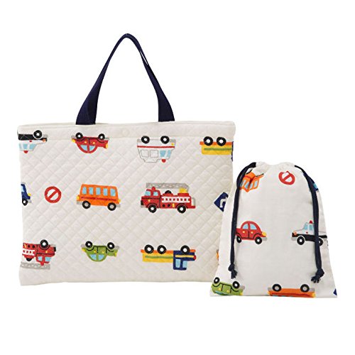 キルティング レッスンバッグ 巾着袋つき くるまパーク ホワイト
