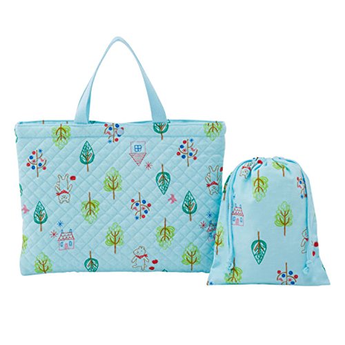 キルティング レッスンバッグ 巾着袋つき フォレストフレンズ サックス