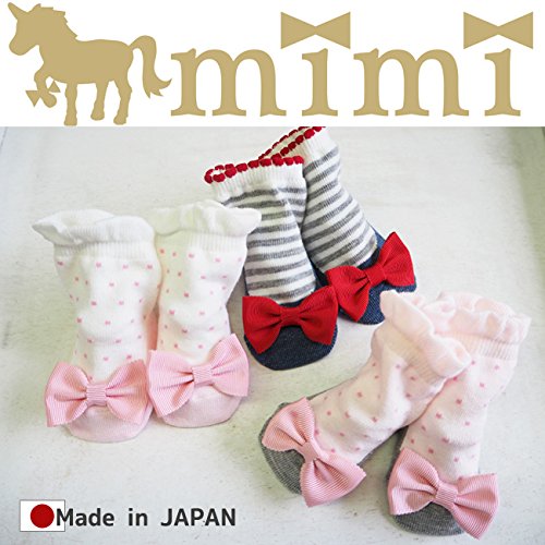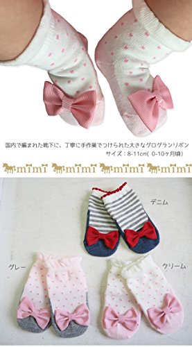 大きなグログラン リボン 靴下 日本製 mimi ミミ 【8-11cm・0-11ヶ月頃】ソックス (クリーム)